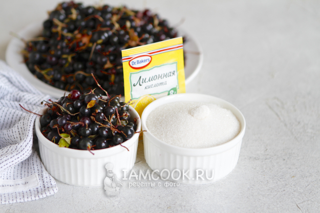 Соберите все продукты по списку для приготовления джема-желе из черной смородины.