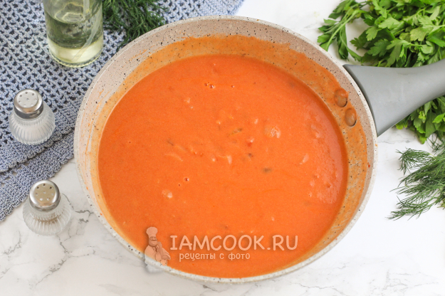 Далее дайте красочному соусу слегка закипеть и сразу выключите нагрев. По желанию можете его процедить от лука, но я этого не делала.