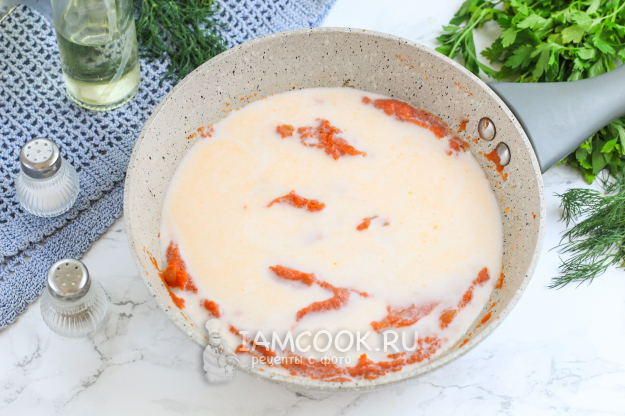 Продукты для приготовления соуса из молока и томатной пасты - перед вами!