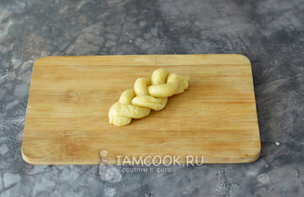 Затем сплетите из жгутов косичку и слепите пальцами края с двух сторон.