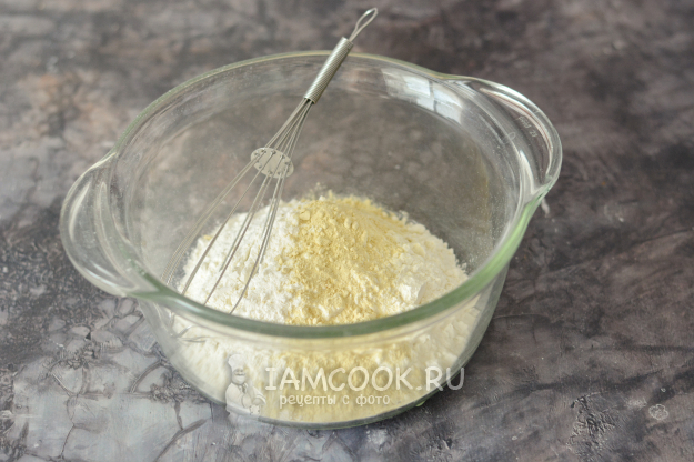 Просейте в миску муку и смешайте её с сухой лимонной цедрой.