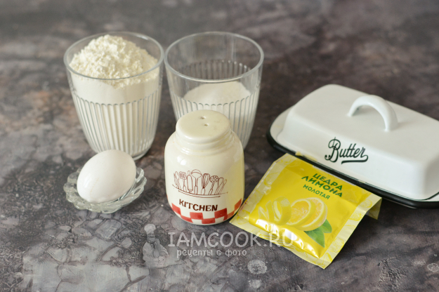 Для того чтобы испечь вкусное домашнее печенье "Косички", подготовьте все продукты по списку.
