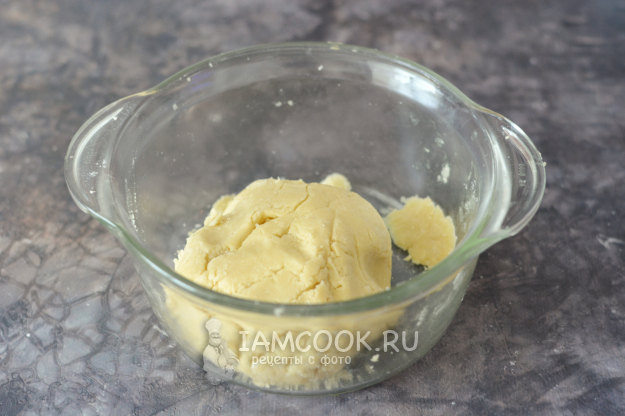 Получившееся песочное тесто оберните плёнкой и уберите в холодильник на 15 минут.
