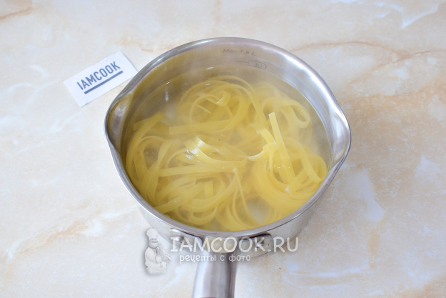 Пасту опустите в кипящую подсоленную воду и варите согласно инструкции на упаковке. Обычно на это уходит 12-15 минут.
