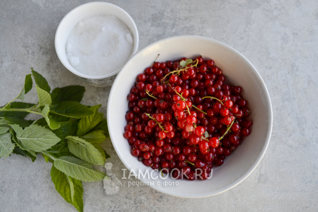 Соберите продукты для приготовления компота из красной смородины с мелиссой на зиму.