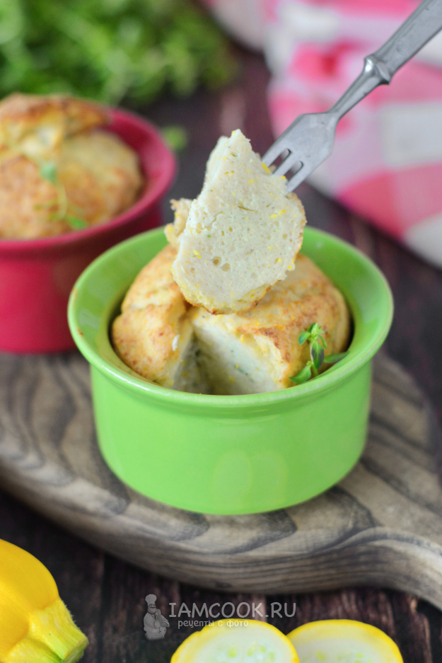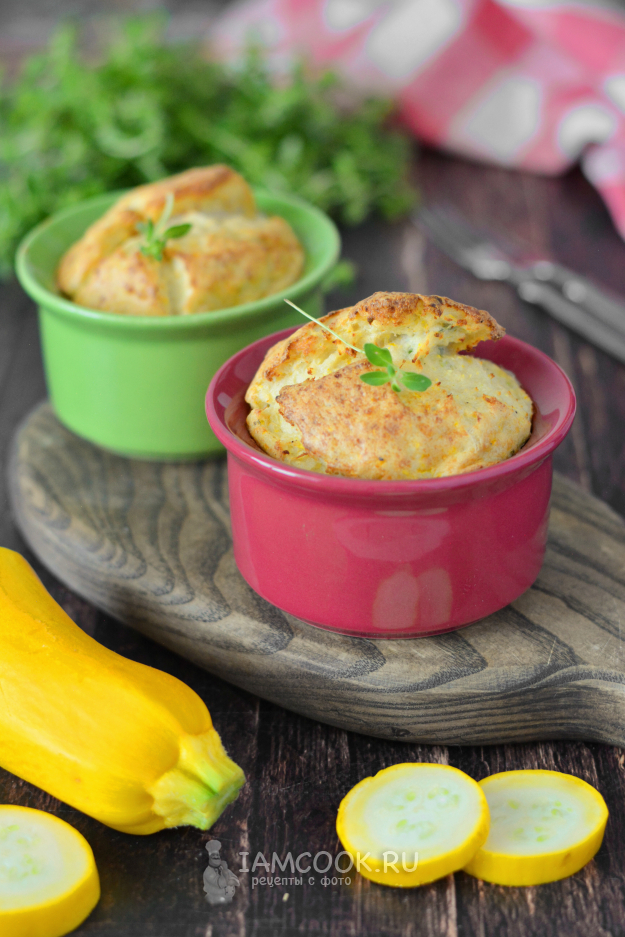 Поместите в нагретую до 180°С духовку и выпекайте около 25-30 минут, до полной готовности. Время запекания зависит от вашей духовки. Суфле из кабачков с фаршем должно подняться и подрумяниться сверху.
