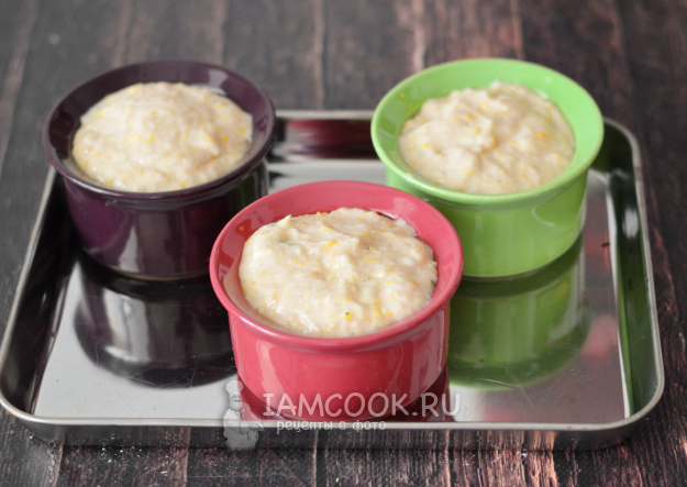 Наполните получившейся массой порционные керамические рамекины и установите их на противень.
