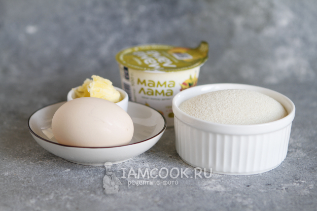 Соберите все продукты для приготовления запеканки из детского творожка.