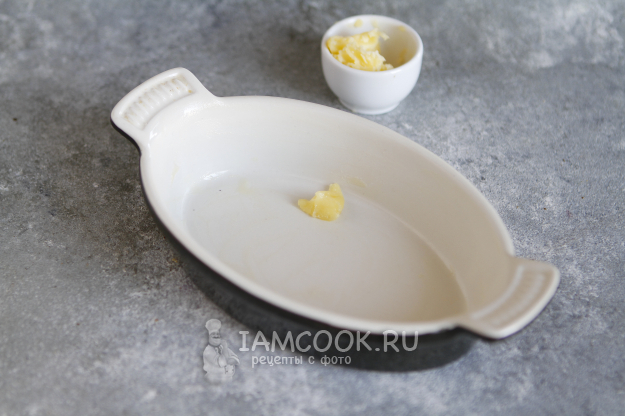 Форму для запекания смазать кусочком сливочного масла. В этом рецепте я использовала топленое масло домашнего приготовления.