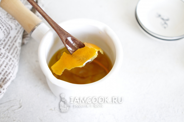 Затем аккуратно достать цедру лимона, удобнее делать это щипчиками. Это позволит лишнему маслу стечь с цедры обратно в сотейник. Не рекомендую оставлять цедру в масле. Все ароматы она уже и так отдала маслу, а срок хранения у масла без цедры будет значительно дольше.