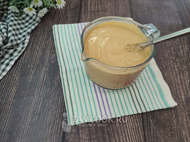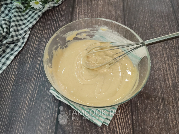 Тесто должно получиться чуть гуще, чем, сгущённое молоко. Дайте тесту постоять минут 10.