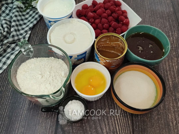 Соберите ингредиенты для приготовления медовика с малиной. Мед можно использовать любой, главное, чтобы он был жидким. Если ваш мед засахарился, стал густым, что вполне нормально при хранении, прогрейте его пару минут в микроволновке или растопите на водяной бане.