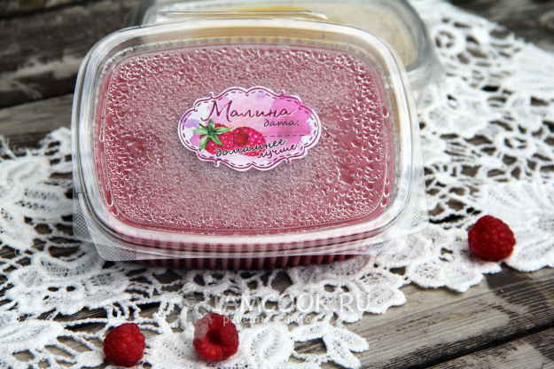 Разлить малину по лоточкам с крышками, у меня одноразовые, пластиковые.