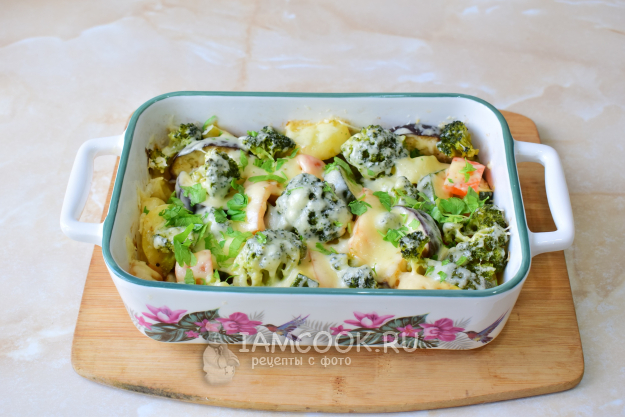 Перед началом приготовления овощей в духовке под сыром соберите все ингредиенты по списку. Пропорции и состав овощей можно немного изменить на свой вкус. Брокколи у меня замороженная. Размораживать предварительно не обязательно.