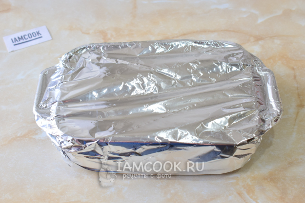 Сверху накройте фольгой и поставьте в духовку, предварительно разогретую до 180 градусов, примерно на 40 минут.