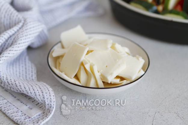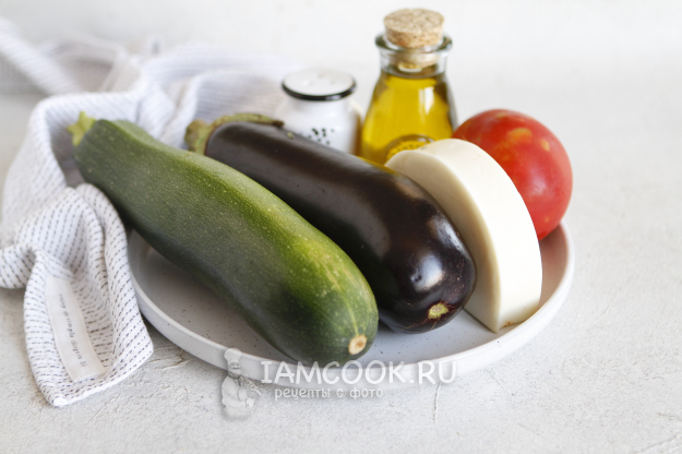 Соберите все продукты для приготовления рататуя с моцареллой.