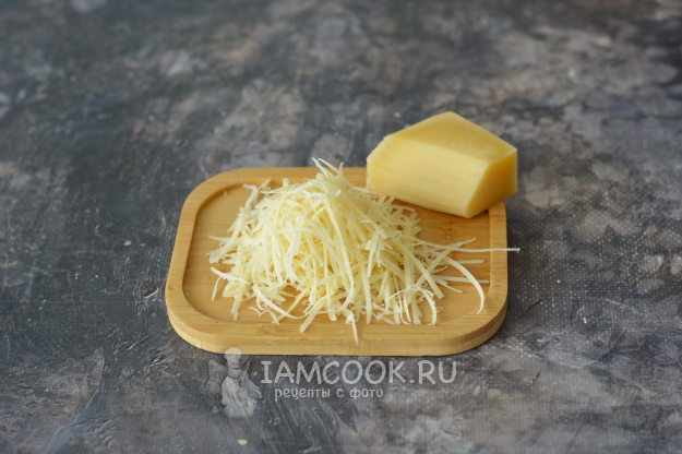 Пармезан сразу натрите на мелкой тёрке, чтобы потом впопыхах о нём не забыть. Пока отставьте в сторонку.