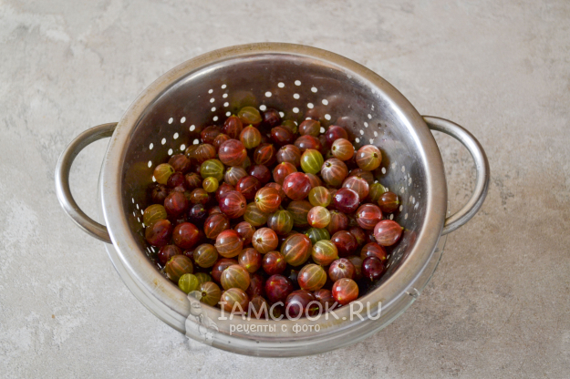Соберите продукты для приготовления конфитюра из крыжовника с желатином на зиму. Переберите ягоды. Недозрелые или подпорченные уберите.
