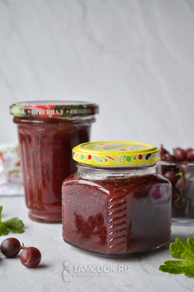 Уваривайте крыжовник 35-40 минут на тихом огне, снимайте пенку. Когда крыжовник будет готов, положите в кастрюлю набухший желатин и сразу же перемешайте, чтобы он полностью растворился. Конфитюр готов. Можно его разложить в банки.