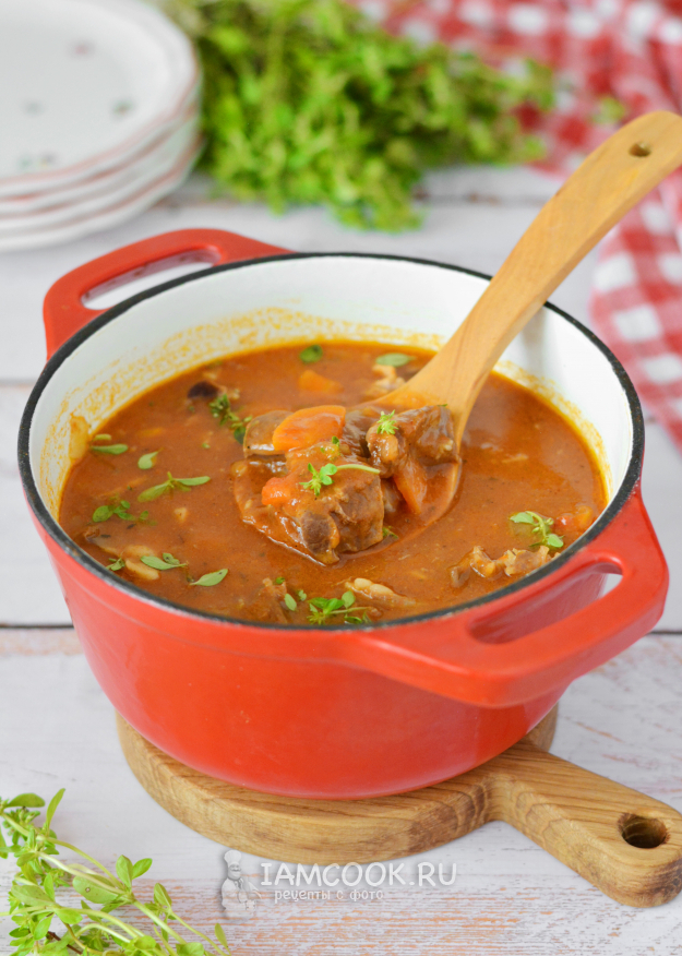 Проварите гуляш с мукой до загустения соуса и снимайте с огня, он готов!