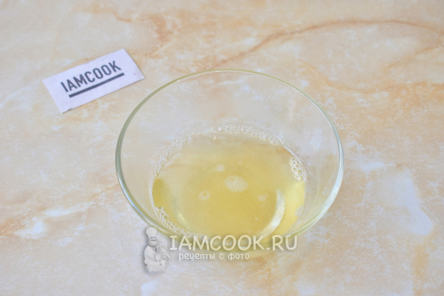 Набухший желатин немного погрейте в микроволновке, чтобы он растворился и стал жидким.