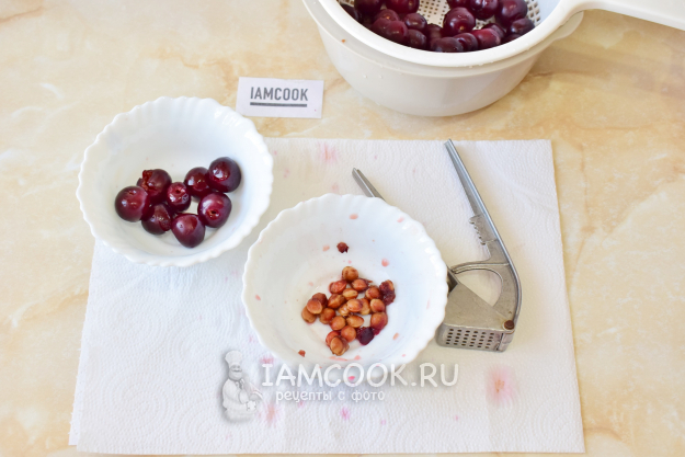 Ягоды вишни помойте и лишнюю воду слейте. Затем из каждой вишни вытащите косточку.