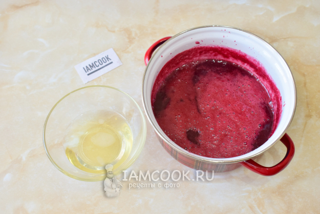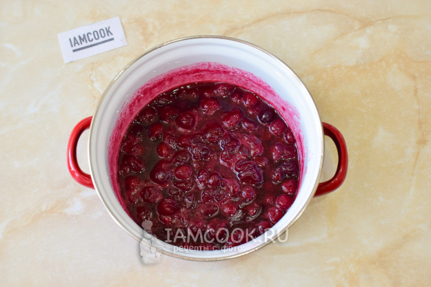 Вылейте желатин в вишневую массу и доведите все вместе до кипения. Кипятить не надо!