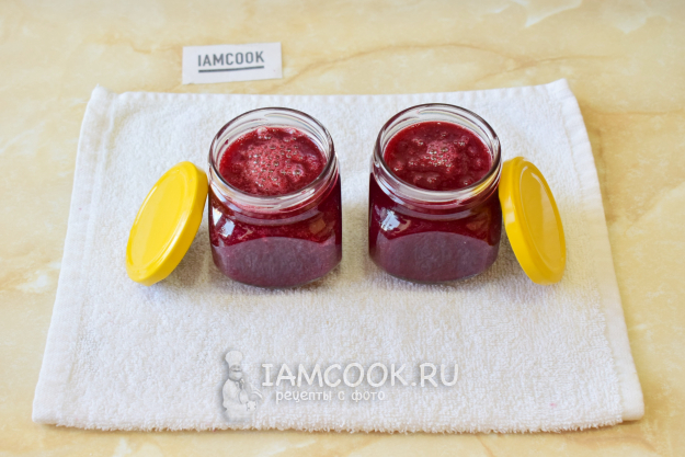Подготовьте баночки. Хорошо их помойте и простерилизуйте любым удобным способом. Затем разлейте в баночки вишневый конфитюр, закройте крышками и оставьте остывать. После остывания конфитюр станет гуще. Остывшие баночки поставьте в прохладное место на хранение.