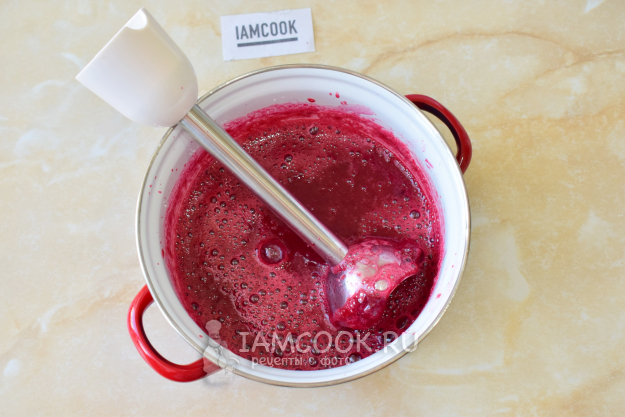 Затем ягоды измельчите погружным блендером в однородную массу.