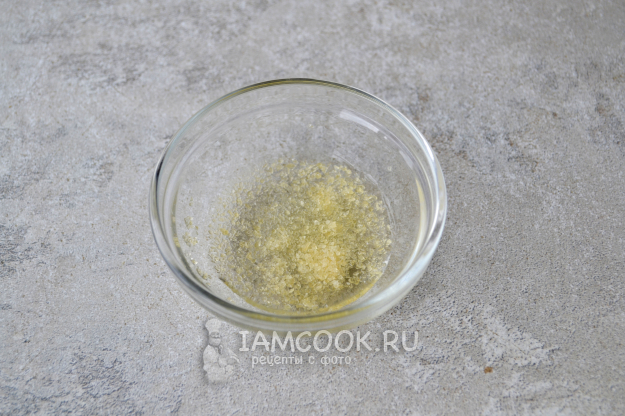 Желатин залейте кипяченой холодной водой, оставьте для набухания.