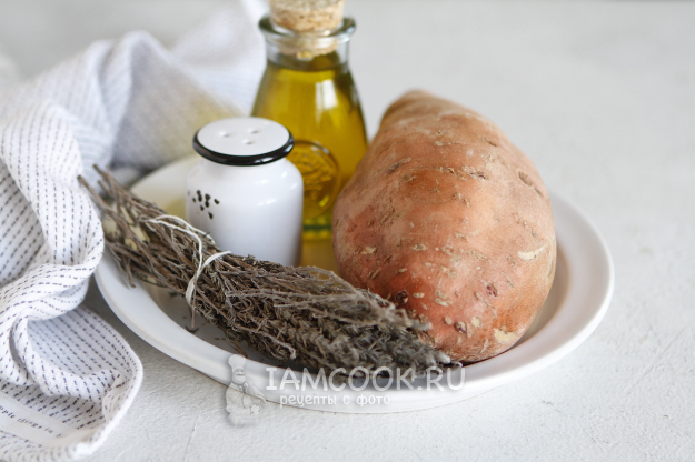 Перед вами все продукты, которые нам понадобятся для приготовления батата в аэрогриле.