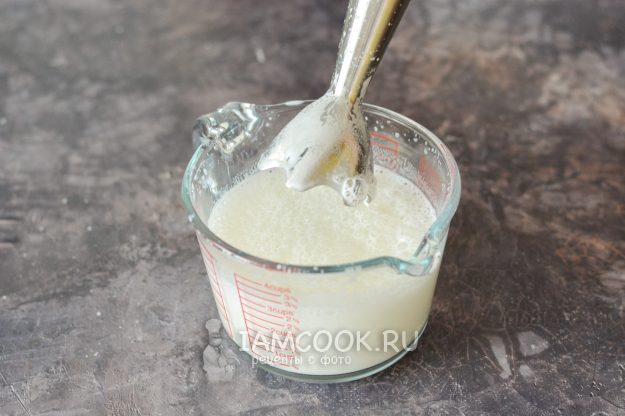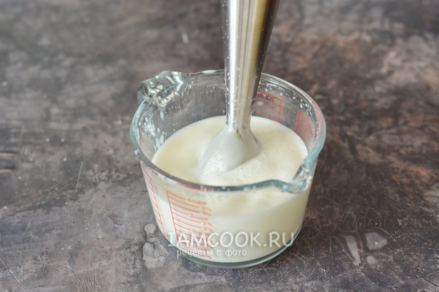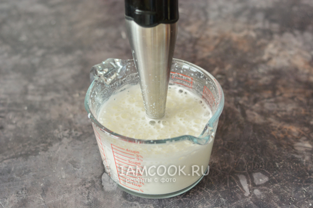 В глубокой ёмкости взбейте холодное молоко при помощи погружного блендера в течение 1-2 минут, пока на поверхности молока не появится обильная и устойчивая пена.