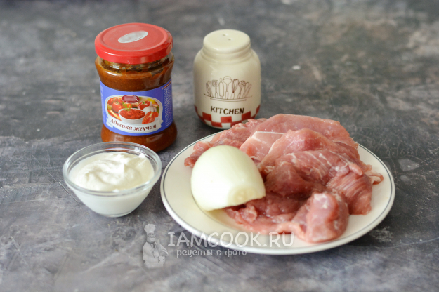 Подготовьте необходимые продукты и будем запекать свинину с аджикой в духовке.