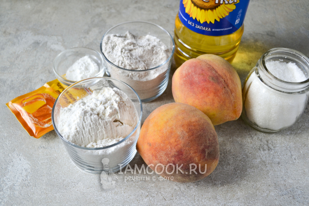 Продукты для приготовления ПП галеты с персиками - перед вами.