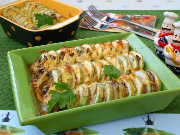 Кабачки с помидорами и грибами в духовке, рецепт с фото