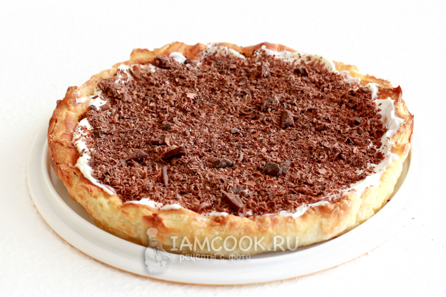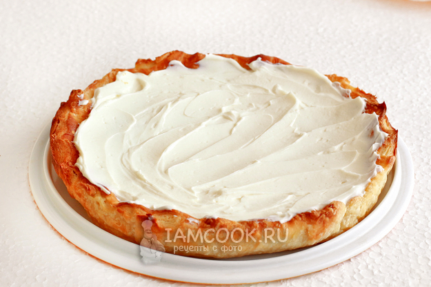 Испеченный слоеный корж охладите до едва теплого состояния и достаньте из формы.