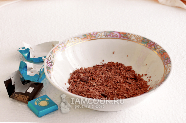 Охлажденный шоколад натрите на терке.