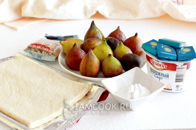 Все продукты для слоеного пирога с инжиром - перед вами. Орехи лучше взять уже обжаренные.