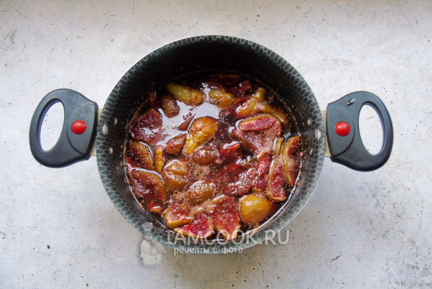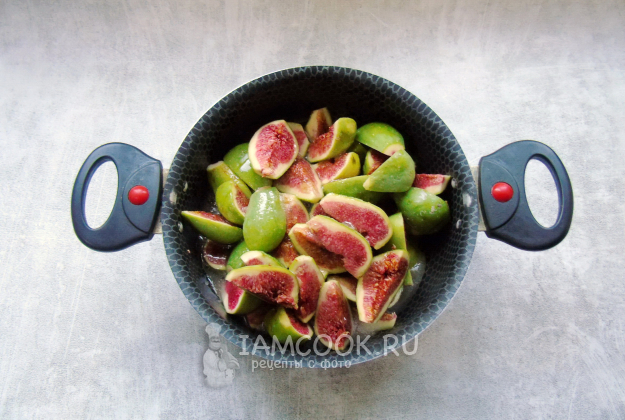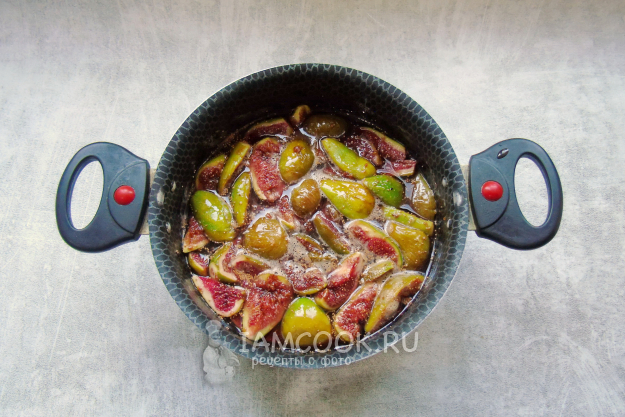 Доведите до кипения инжир в сиропе и огонь убавьте. Готовьте на небольшом огне 20-25 минут. После снимите с плиты и дайте варенью полностью остыть в течение нескольких часов.