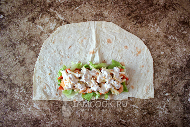 Сверните лаваш с начинкой традиционно – удлиненным конвертом.