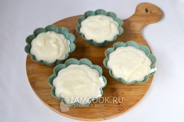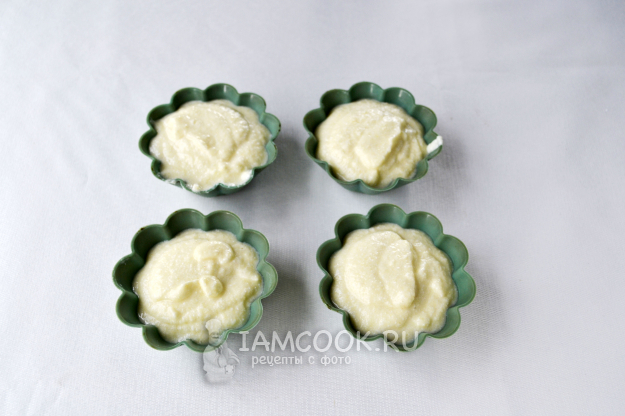 Небольшие силиконовые формочки заполните подготовленной творожно-кабачковой массой.