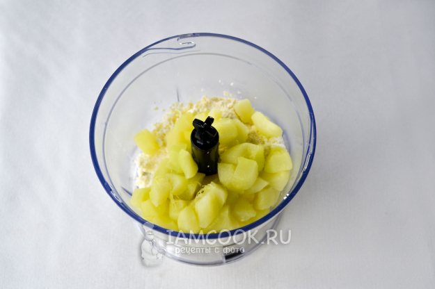При помощи насадки металлический нож измельчите продукты до однородной массы.