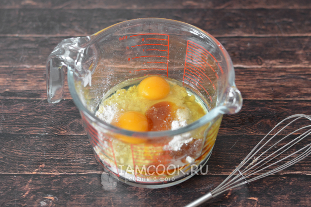 У вас должна получиться густая однородная масса. Размешивайте тщательно, чтобы не было комочков.