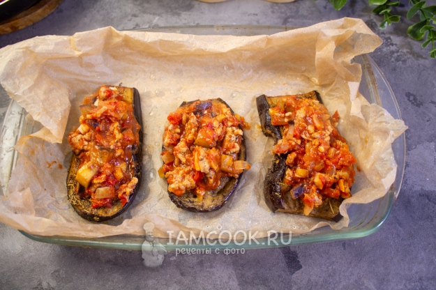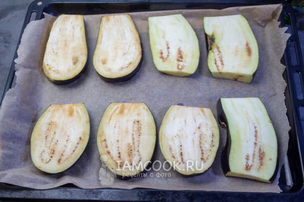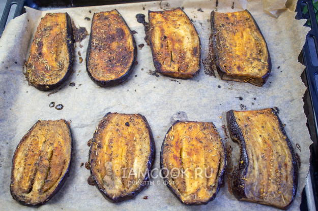 Достаньте баклажаны из духовки, они должны быть почти готовы, но не пересушены!