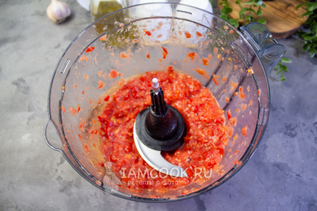 Приготовьте томатный соус: помидоры помойте и обсушите, нарежьте на дольки и измельчите в пюре.