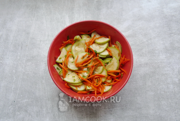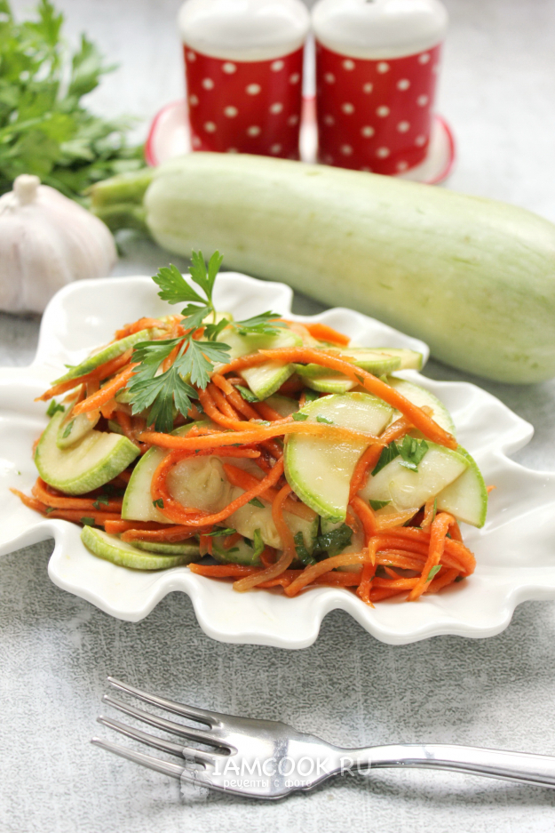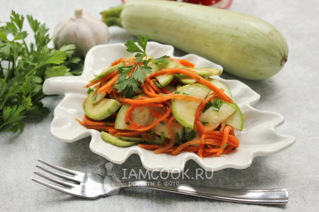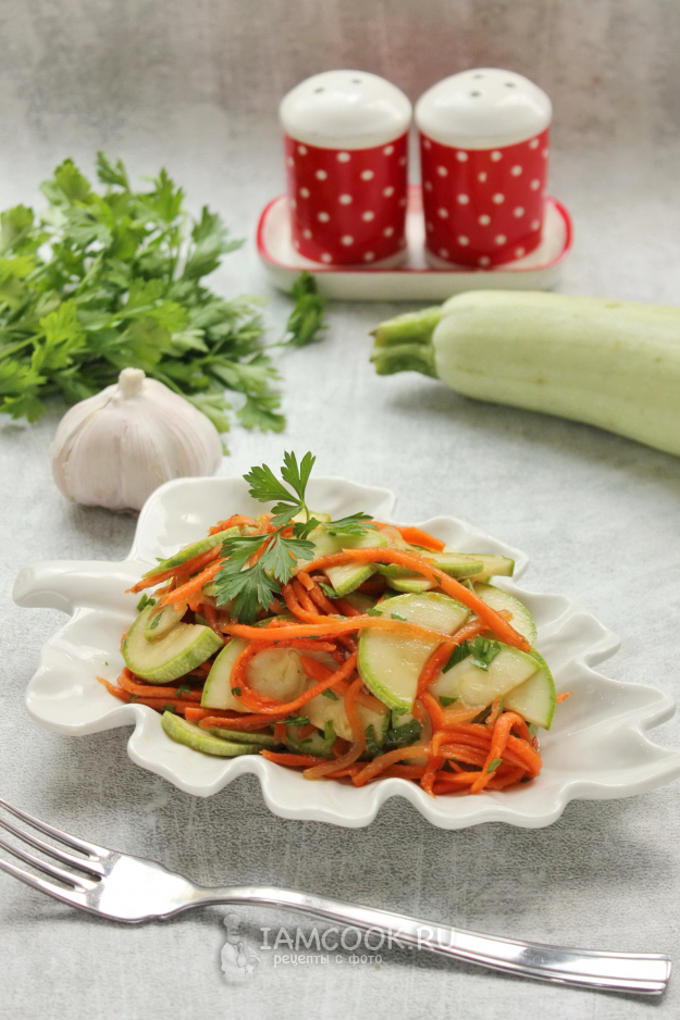 Ароматная, сочная, в меру острая закуска из кабачков и моркови готова.