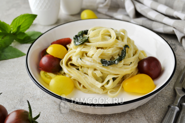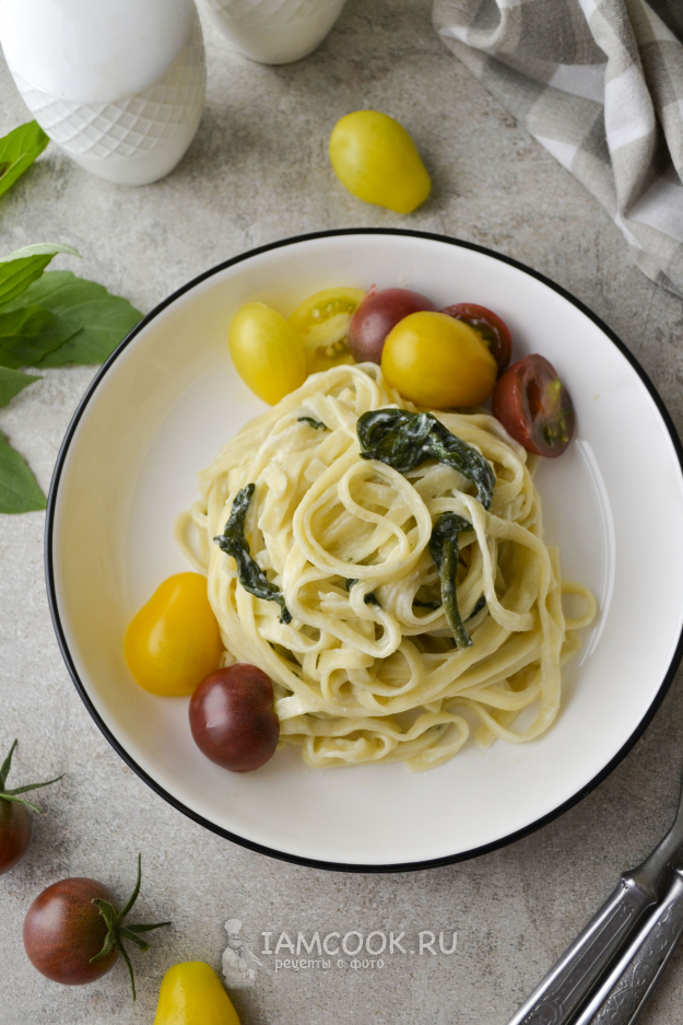 Подавайте макароны с рикоттой и шпинатом к столу сразу со сковороды, горячими.