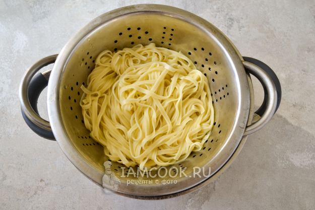 Макароны отварите в подсоленной воде на 1 минуту меньше, чем указано в рекомендации на упаковке.