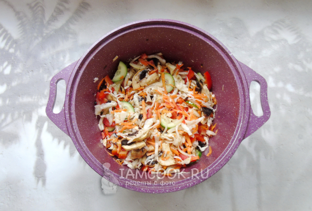 Дайте овощам постоять 2-3 часа. Через это время овощи пустят сок.