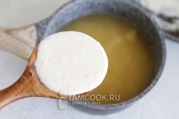 Затем влить сливки и, помешивая, уварить их до загустения.